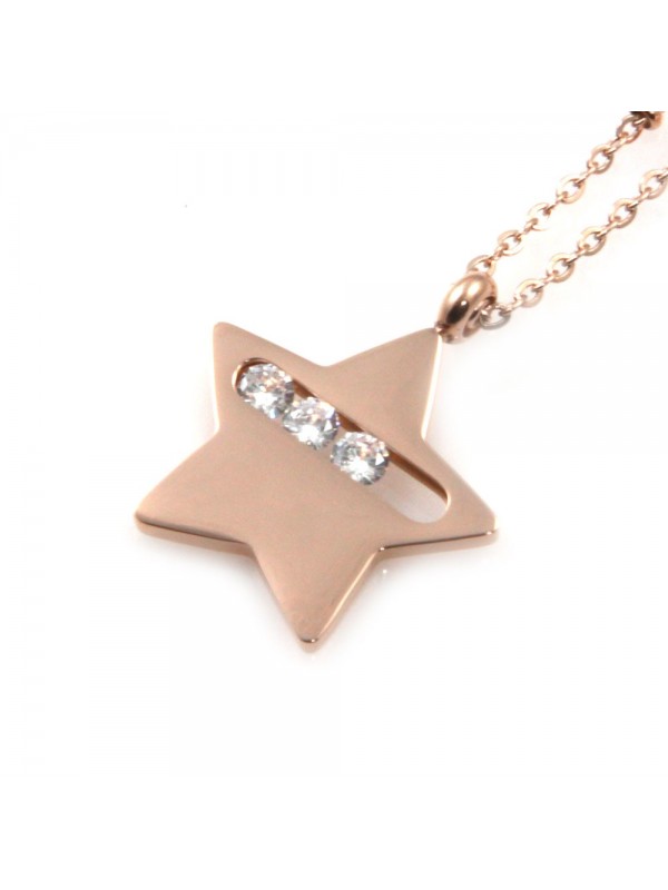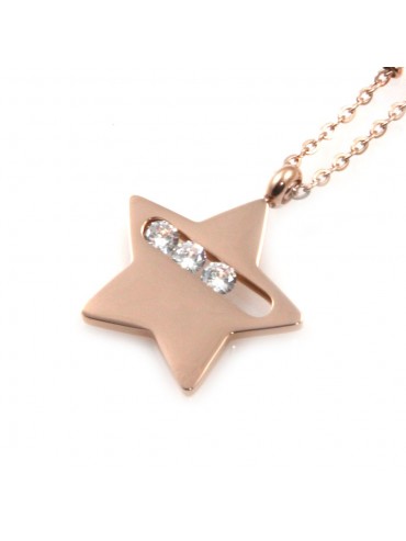 Collana stella stellina ciondolo donna in acciaio con strass catena cm 50 h22 l20 cll0523